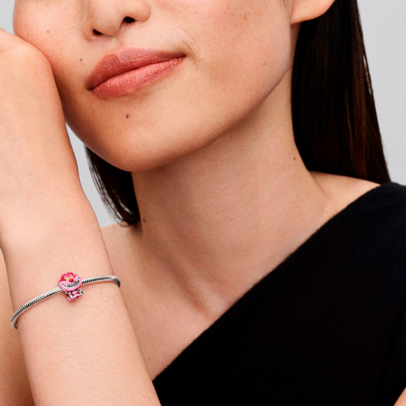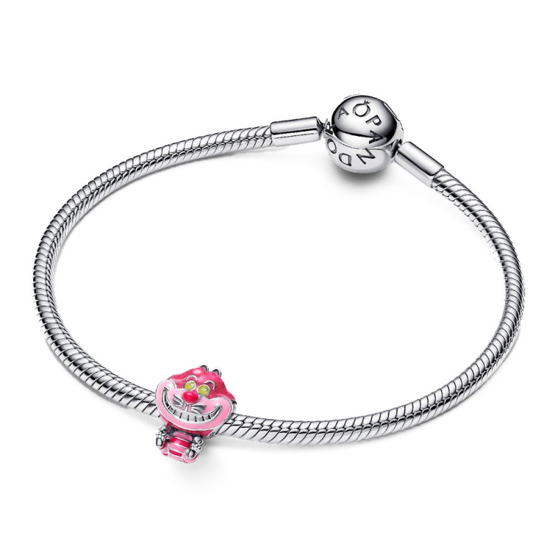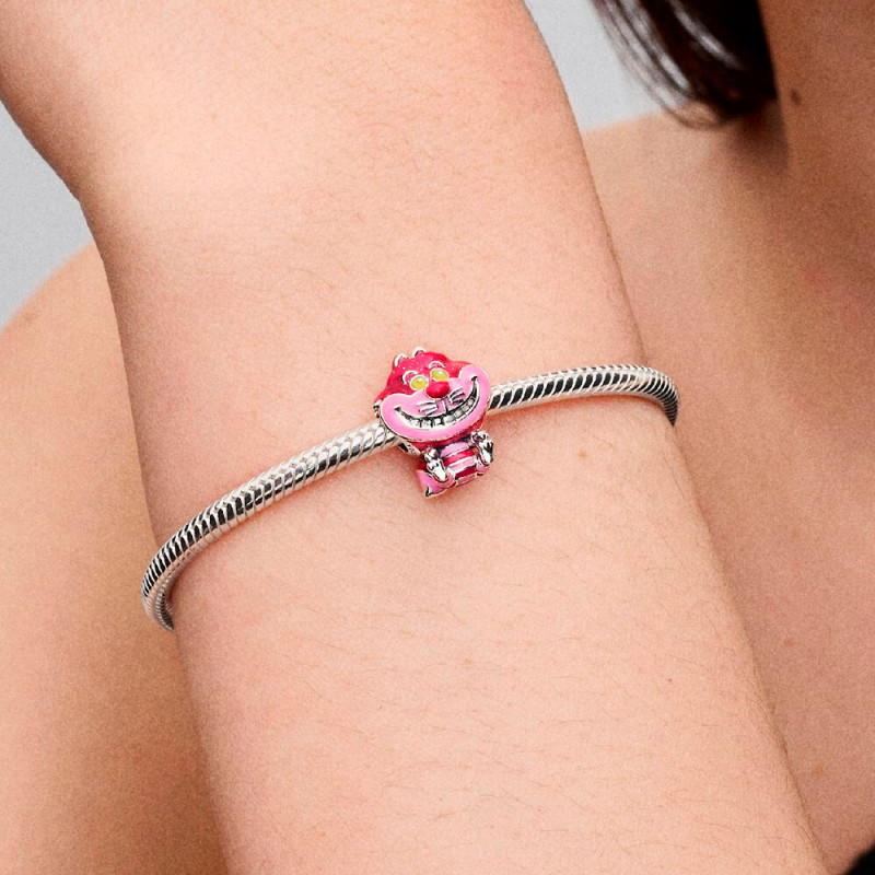 Inspirado en el Gato de Cheshire de Disney, este charm en plata de primera ley presenta esmalte de intensos colores, ojos que brillan en la oscuridad y su icónica sonrisa burlona. Los detalles divertidos y el logotipo ©Disney completan este diseño lleno de magia.
