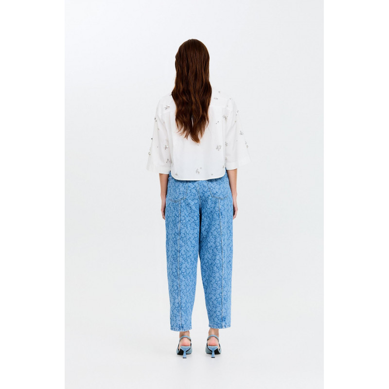 Deja que estos vaqueros cropped para mujer sean los protagonistas de tu outfit. Un corte recto con perneras redondeadas se combina con un estampado floral láser, costuras llamativas y cintura alta. Chaqueta a juego disponible. 100 % algodón