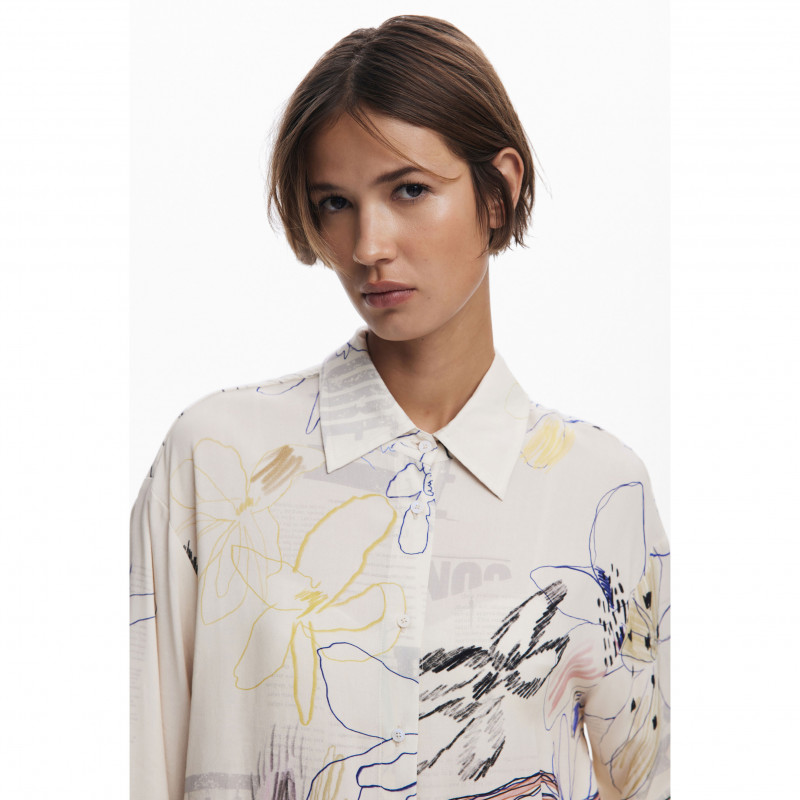 Camisa oversize fluida de manga larga con estampado Arty estilo collage de letras y motivos florales.Estampado ArtyFit: OversizeManga: LargaAbotonadura frontalViscosa Lenzing™ EcoVero™