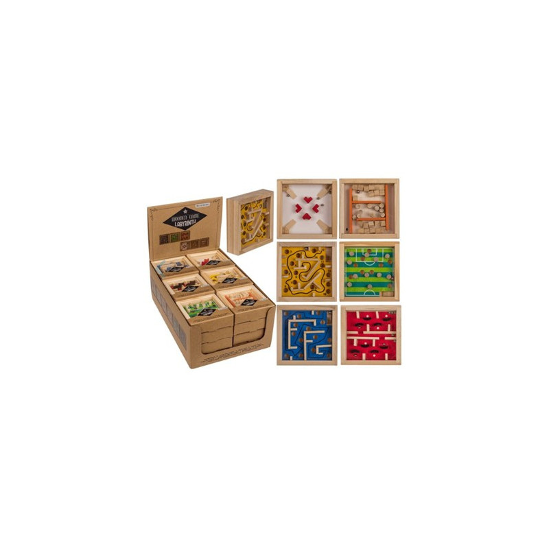 Juego de destreza de madera, laberinto, aprox. 9 x 9 cm, 6 diseños surtidos, en embalaje, 24 piezas en exhibición