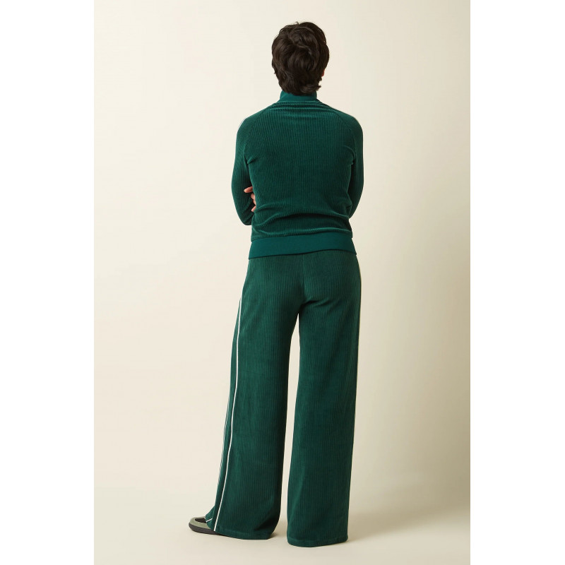 Chaqueta ligera confeccionada en terciopelo de pana de algodón con acabado elástico, que combina comodidad con un acabado sofisticado. Presenta cuello de punto relajado, mangas largas con puños y detalles de pespunte tipo piping que aportan refinamiento. El cierre frontal con cremallera añade un toque moderno y funcional.  Detalles del producto: * Cuello de punto (knitted collar) * Manga larga con puños ajustados y piping decorativo  * Tejido exterior: 76 % algodón orgánico, 18 % poliéster reciclado, 6 % elastano — terciopelo de algodón con elasticidad ligera.  * Corte cómodo que permite movimiento sin perder presencia. * Color “Dragonfly Green”: verde intenso con matiz distintivo. Instrucciones de cuidado: Lavar del revés a 30 °C en programa delicado, sin lejía, planchar a baja temperatura, no usar secadora, secar en plano.  Por qué te va a gustar: Esta chaqueta ofrece un equilibrio perfecto entre textura, color y estructura: el terciopelo de pana aporta profundidad al look, mientras que el tono verde “Dragonfly Green” lo hace moderno y versátil. Funciona tanto con vaqueros y zapatillas para un estilo relajado como combinada con falda midi y botines para una opción más refinada. El detalle de piping le da un toque de diseño que marca la diferencia sin resultar exagerado.