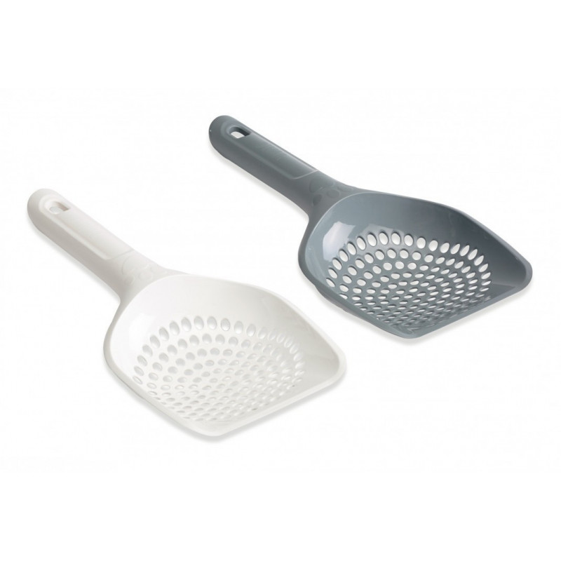 Contiene una rejilla que evita coger en exceso la cantidad de arena a la hora de extraer las partes aglomeradas y sucias de las cabinas de aseo de los gatos.