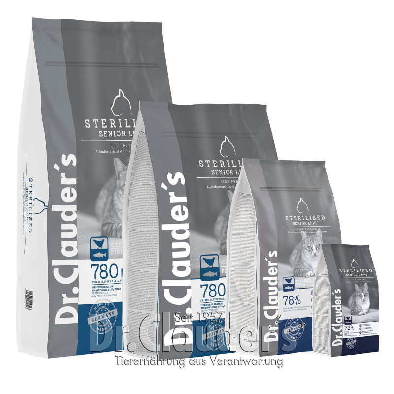 Dr. Clauder s High Premium Sterilizado Senior Light es el alimento ideal para gatos a partir de los 8 años, esterilizados y obesos o con tendencia a engordar. Naturalmente sabroso.