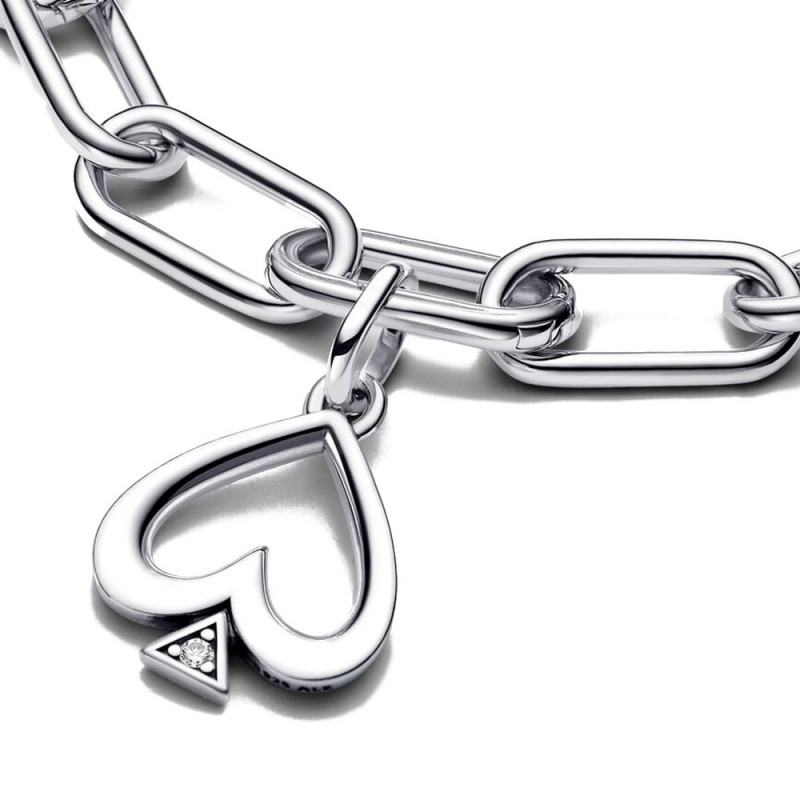 Confía en tu intuición con el Charm de Medallón Pica de Pandora ME. Este charm presenta el motivo de una pica con un marco con forma de corazón invertido y un triángulo con detalles de microesferas y una gema brillante. A menudo se cree que el as de picas representa la sabiduría, el intelecto y el crecimiento. Este charm de medallón se puede llevar en los portadores de charms de Pandora Moments y en los eslabones que se pueden abrir en los portadores de Pandora ME.