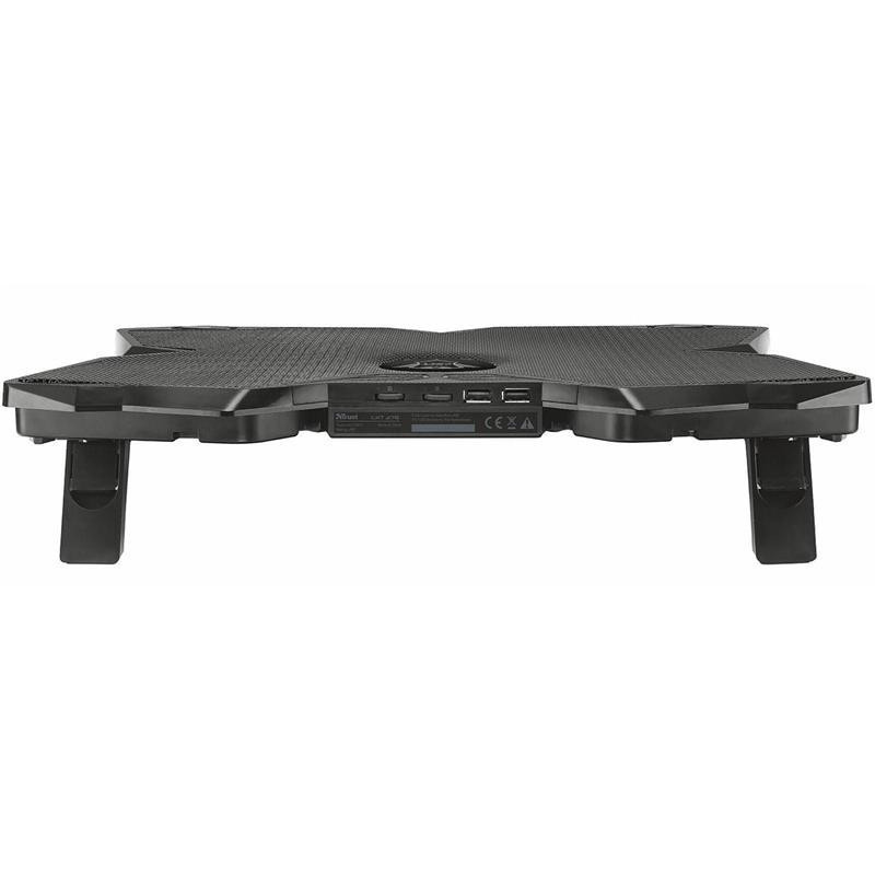 El Trust Gaming GXT 278 está equipado con cuatro ventiladores de 120 mm para enfriar su portátil. Además de cuidar sus componentes técnicos, este modelo tiene una altura regulable y una retroiluminación roja. La velocidad de los ventiladores también es ajustable para decidir qué tratamiento aplicar a su máquina de acuerdo a sus necesidades. El soporte GXT 278 está alimentado por USB y su cable encaja cómodamente debajo del dispositivo.