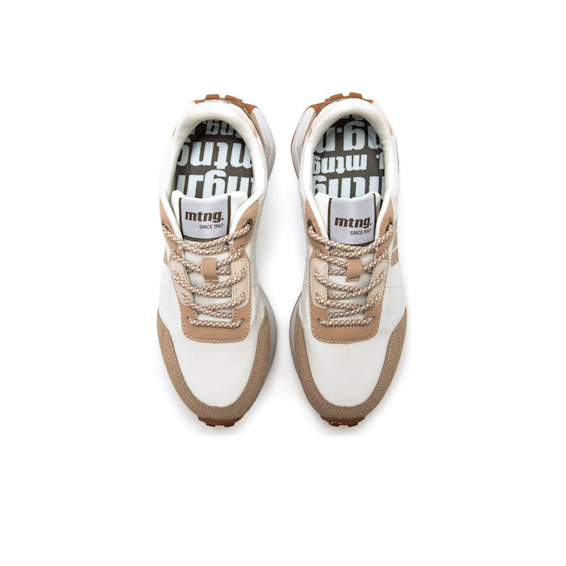 Zapatillas estilo casual deportivo de color blanco con detalles beige para mujer, modelo Zinc de Mustang. Este diseño combina una suela de goma con dibujo marcado tipo trail y paneles en contraste que aportan un look actual y versátil. El logo lateral, los cordones bicolor y el talón en color verde caqui le dan un toque urbano. La base acolchada con plantillas con tecnología Starfit y la suela con tecnología Extralight, las hace más ligeras y cómodas para llevar durante horas. Con certificado VEGANO sellado por INESCOP, el cual garantiza que la naturaleza química principal del material no se corresponde con fibras de origen animal.Modelo60779< 2 Blanco - LottGéneroMujerSuperior:65% Textil + 35% Sintético.Recubrimiento:1Textil.Tiras:100% Textil.Suela:100% Sintético.