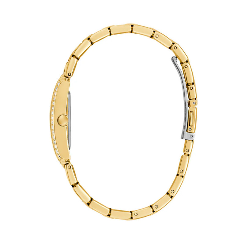 Este reloj Guess destaca por su diseño rectangular, aportando un estilo moderno y refinado que se aleja de lo convencional. Confeccionado en acero reciclado y combinado con un brazalete de acero inoxidable, es una pieza versátil que eleva cualquier look con un toque elegante.