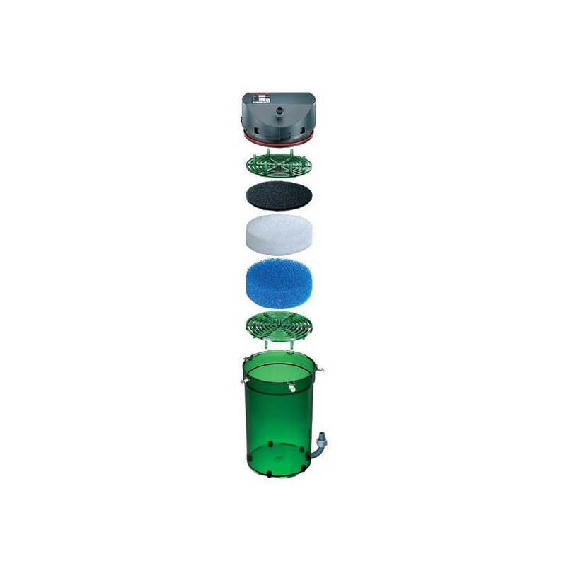 - Se puede equipar con esponjas filtrantes y/o materiales filtrantes sueltos