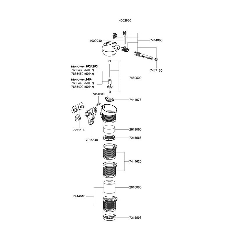 Lo especial en el biopower es que ofrece una filtración por diferentes capas como un filtro exterior. Las cerradas cestas filtrantes se pueden llenar con materiales filtrantes altamente eficientes (p.ej. con el suministrado SUBSTRATpro). Abajo está la cesta de entrada con el cartucho filtrante para la prefiltración mecánica-biológica. El agua entra en el filtro abajo, sigue su curso a través de las diferentes capas filtrantes hacia arriba y vuelve limpia de nuevo al acuario.