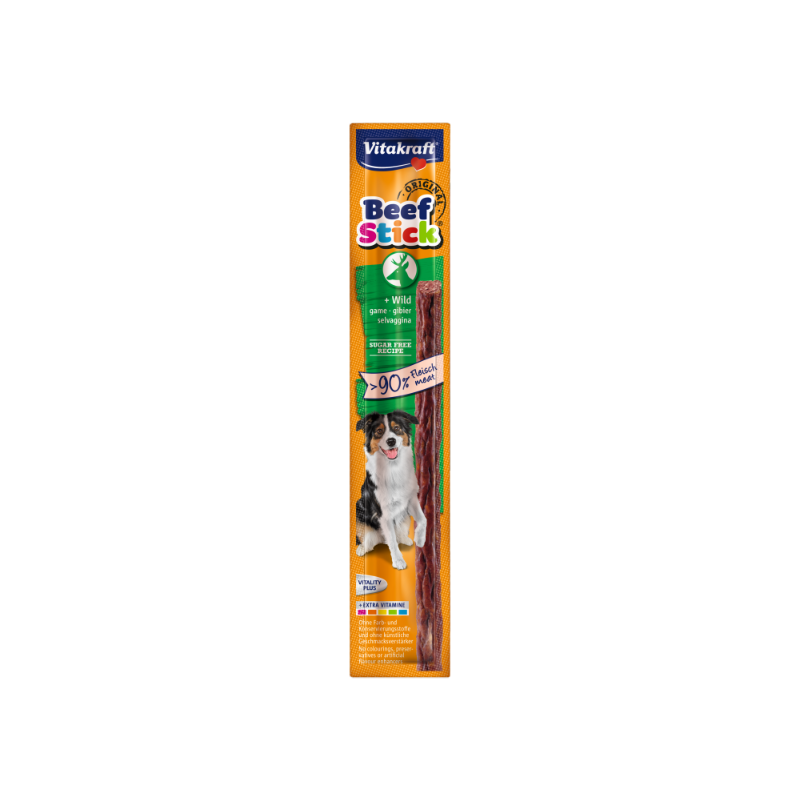 ¡Con Beef Stick tu perro saltará de alegría! Este palito de carne es el favorito de razas grandes, medianas y pequeñas porque tiene un olor delicioso y un sabor único gracias a su contenido extra en carne. Es el snack perfecto para mimar o recompensar a tu mascota. ¿Y por qué no? También para comer entre horas. Además es súper práctico gracias a su empaquetado con sellado individual lo que lo convierte en el snack ideal para llevar.