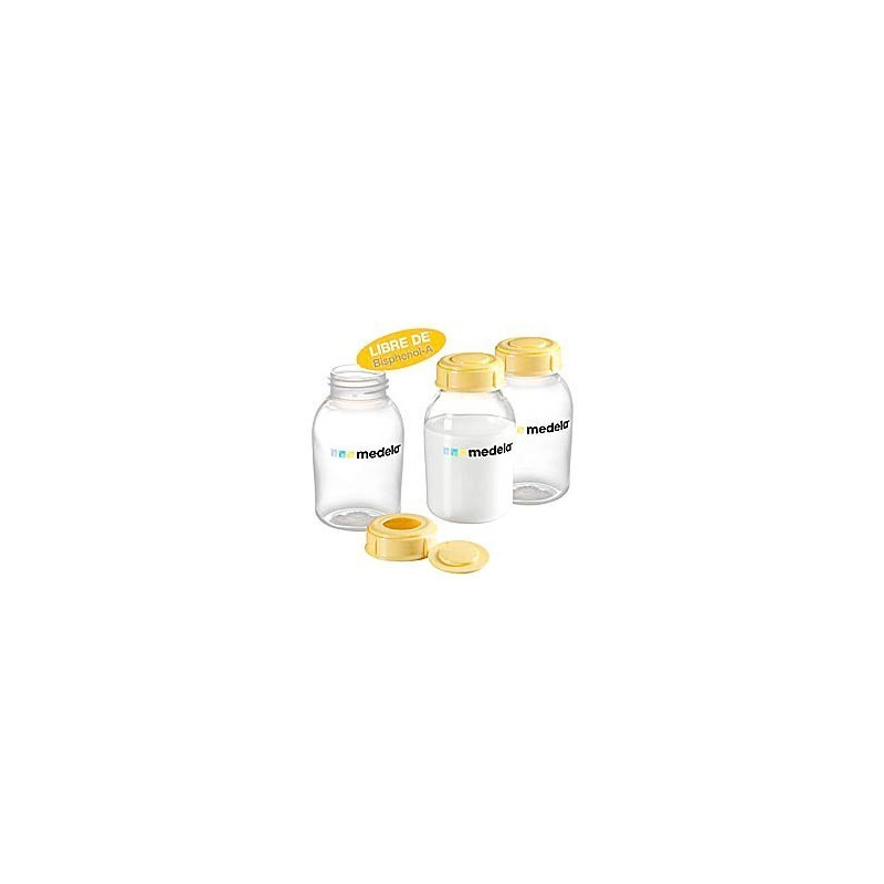 Botella-biberón de 150 ml. Ideales para almacenar, conservar y congelar la leche.Se adaptan a todos los extractores Medela.Materiales:Botella-biberón: polipropileno libre de Bisfenol-A.Disco tapa: polipropileno.