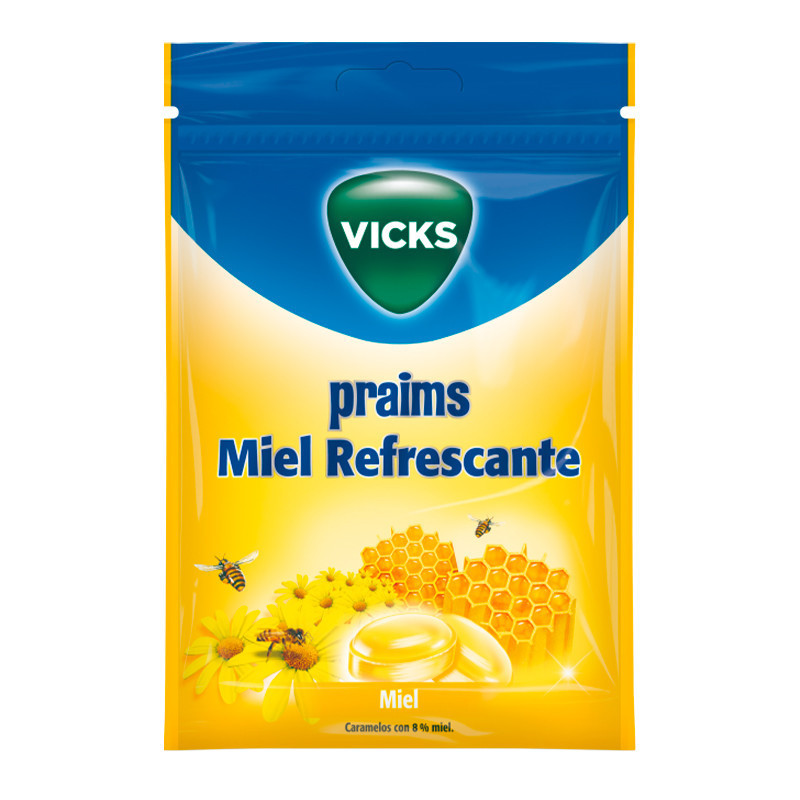 Disfruta de la sensación de respirar profundamente. Descubre el delicioso sabor de los caramelos Praims Miel Refrescante. Cada caramelo proporciona una sensación de frescor suave, que proviene del toque de mentol y un agradable sabor a miel.