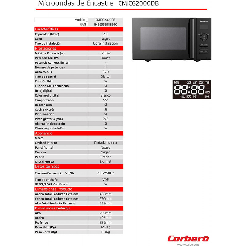 Los microondas Corberó dispone de una función para poder controlar el tiempo de cocción de los alimentos, teniendo un temporizador de hasta 90 min que se indica en el microondas y un avisador salta al finalizar el tiempo asignado, desconectando el funcionamiento.