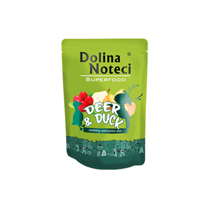 Alimento húmedo para perros, que contiene hasta un 80 % de carne y productos animales (40 % ciervo, 40 % pato). Su composición también incluye fruta fresca y aditivos naturales con un altísimo contenido en ingredientes biológicamente activos - que afectan positivamente al organismo del perro, como el mejillón de Nueva Zelanda y las algas. El alimento sin cereales con propiedades dietoprofilácticas se desarrolló en colaboración con expertos en el campo de la nutrición animal. Se distingue por una receta en la que se utilizan especies cárnicas con propiedades especiales:
