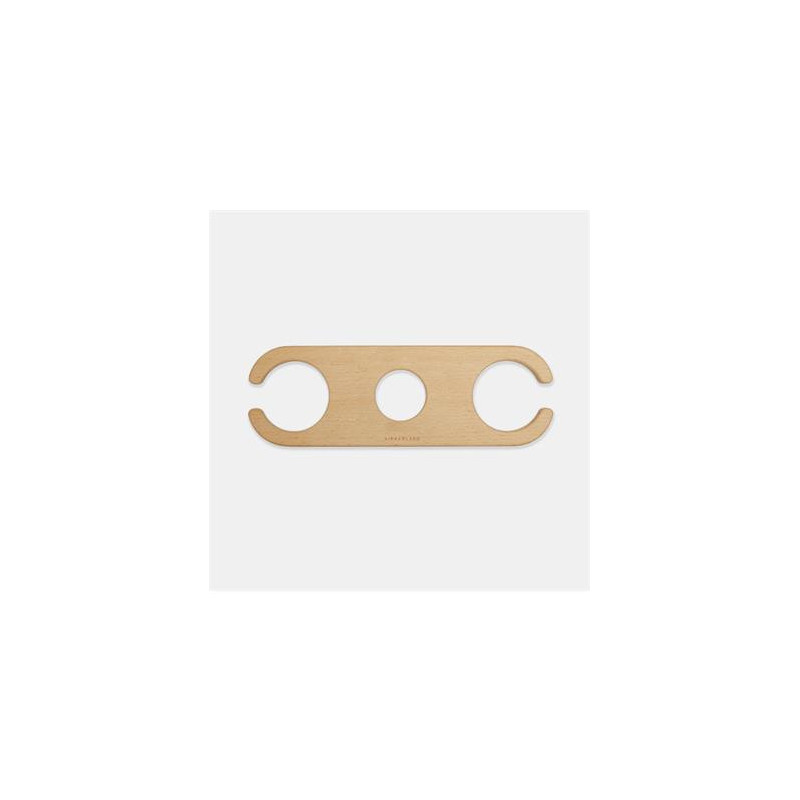 ¡Que no se caiga ni una gota! Con este soporte de madera para 1 botella y dos copas de vino.