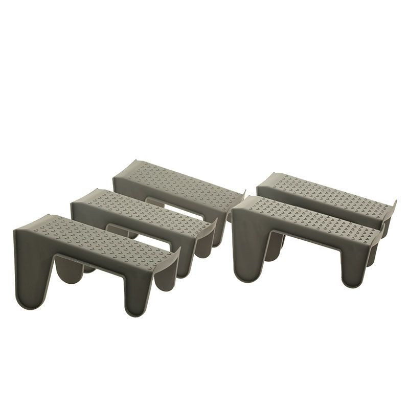 Práctico juego de cinco zapateros fabricados en plástico ideal para optimizar el espacio de almacenamiento y mantener en orden el calzado.