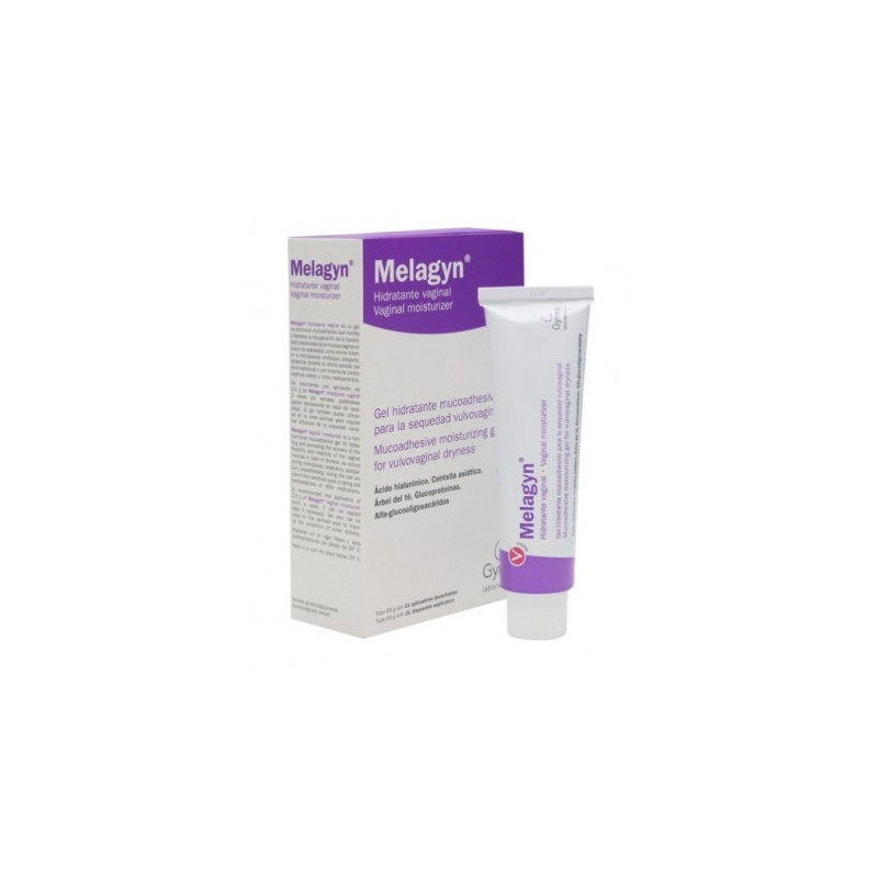 Melagyn Hidratante vaginal es un gel mucoadherente, no hormonal, que hidrata y favorece la recuperación de la flexibilidad y elasticidad de la mucosa vaginal. Puede utilizarse siempre que exista sequedad, como ocurre durante la menopausia, el postparto, la lactancia o durante el último periodo del ciclo menstrual, tras una intervención quirúrgica en la zona, en tratamientos de quimioterapia y radioterapia, por la toma de anticonceptivos orales u otros medicamentos, durante épocas de estrés, en caso de utilizar jabones no específicos, perfumes o desodorantes que causen sensibilidad, así como por el uso de ropa sintética o ajustada. Melagyn® Hidratante vaginal es un gel mucoadhesivo no hormonal, con una fórmula innovadora que contiene: Ácido hialurónico, Centella asiática, Árbol del té, Glucoproteina, y Alfa-glucoligosacáridos.