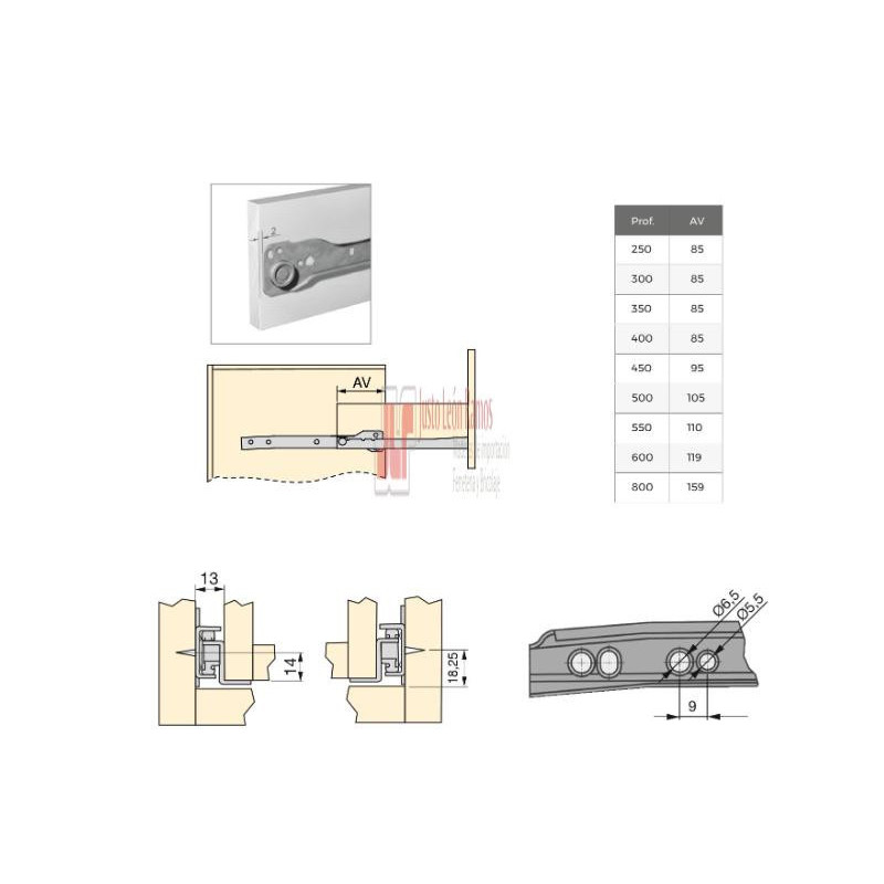 Juego De Guías De Ruedas Para Cajones Cierre Con Caída T30, Longitud 800mm, Acero, Pintado Aluminio