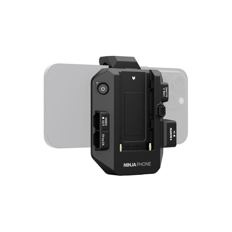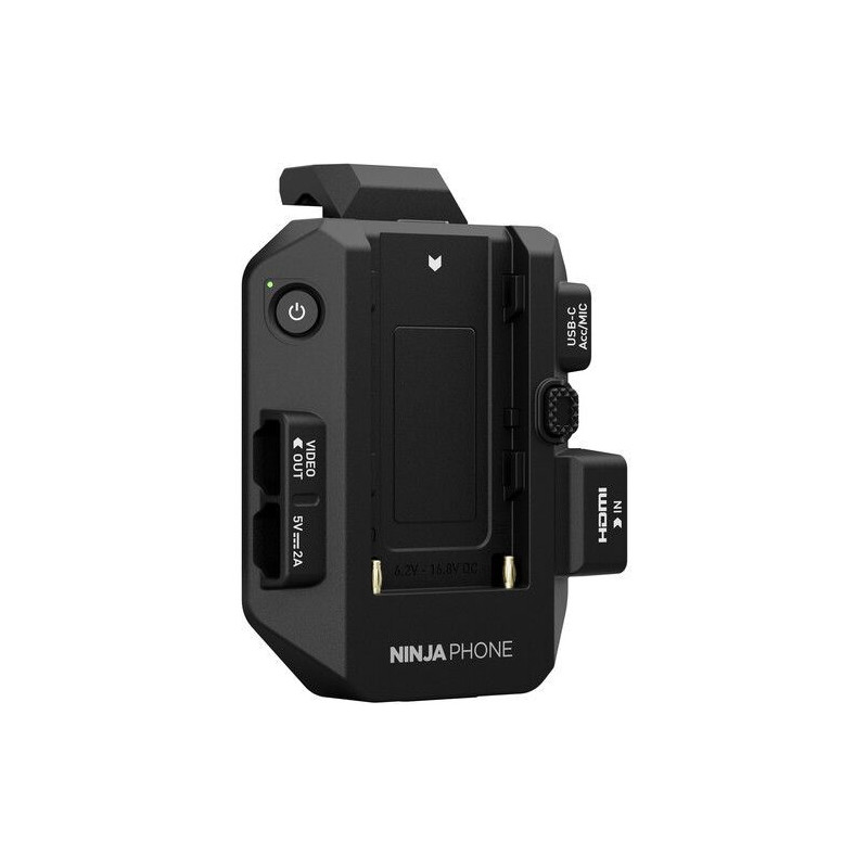 El coprocesador de video Ninja Phone de Atomos es un coprocesador de video de 10 bits para teléfonos inteligentes y tabletas que le permite grabar desde cámaras profesionales a través de HDMI. Diseñado para aprovechar el iPhone 15 Pro, 15 Pro Max y su pantalla OLED, el Ninja Phone le permite codificar una señal HDMI a ProRes o H.265. El video codificado se envía a través de una salida USB-C a la entrada USB-C de su iPhone, donde su procesador SoC A17 decodifica la señal y la muestra en la pantalla de su iPhone, que presenta una relación de contraste de 2,000,000:1 y admite Dolby Vision, HDR10 y HLG.