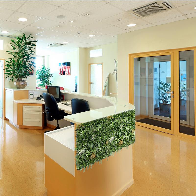 • Fabricado con hojas artificiales unidas a una malla no apreciable una vez instalada.