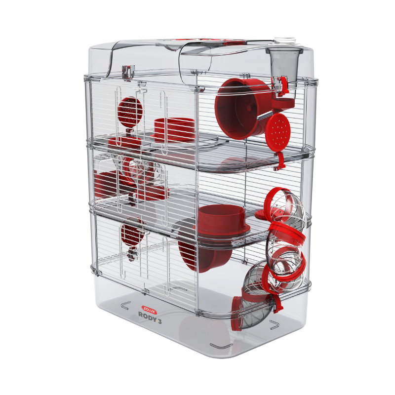 La Jaula para roedores pequeños Rody3 Triple de Zolux, es una jaula que evolutiva para pequeños roedores tales como los hámster, jerbos, ratones, etc. en tres niveles.