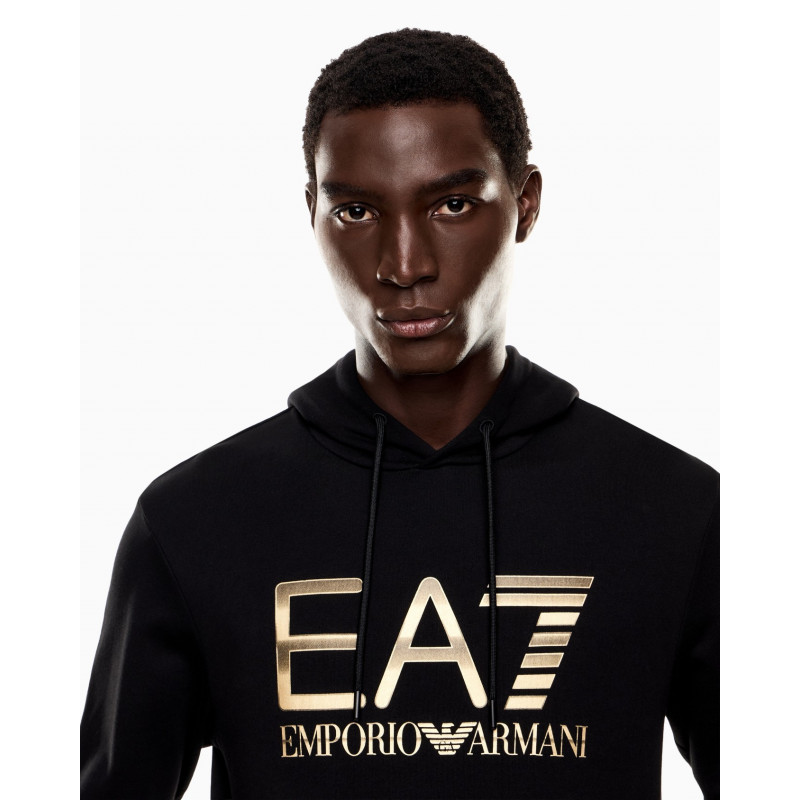 Sudadera de corte regular con capucha, confeccionada en algodón elástico. El modelo está personalizado con maxilogotipo EA7 en el pecho con efecto neón, que remite a otras prendas de la línea Logo Series. El logotipo EA7 es el auténtico protagonista de la propuesta Logo Series, que esta temporada es versátil en su interpretación, alternando el tono sobre tono, los motivos retro y los formatos mini. Prendas de corte cómodo y versátil, perfectas para momentos de ocio y relax.