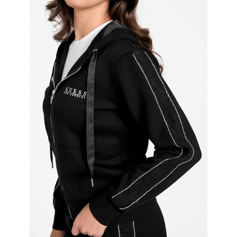 - Manga larga con bandas laterales con tachuelas y encaje.