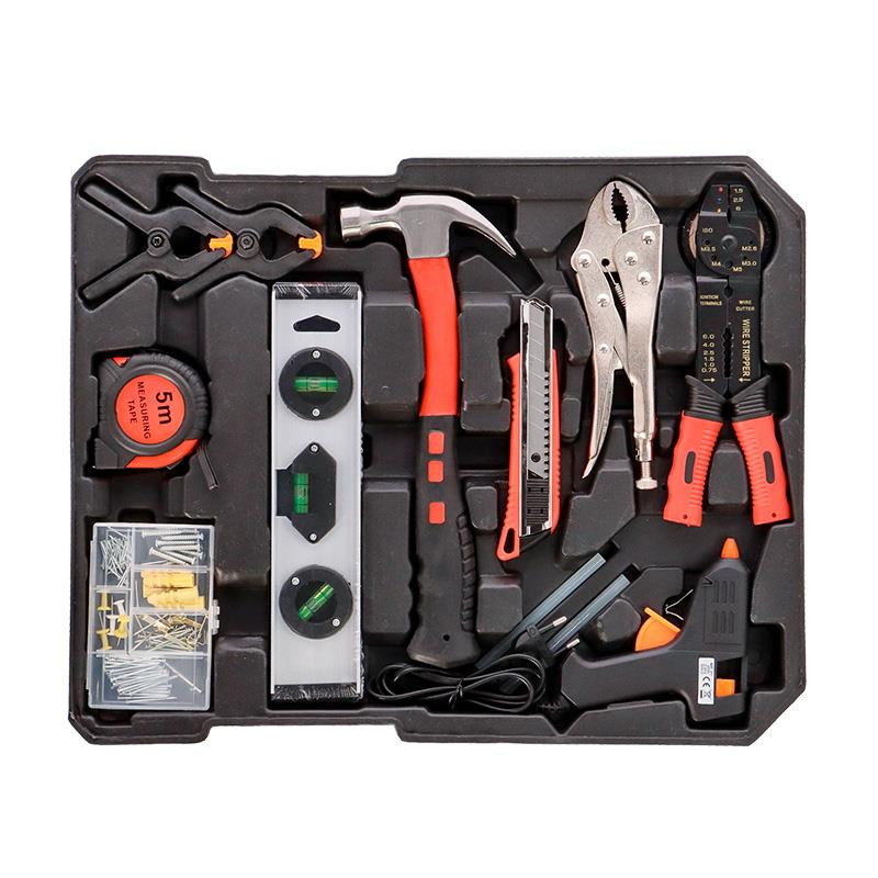 • 1 Cutter, 1 Martillo carpintero, 1 Flexómetro 5mts, Nivel 25cm, 60 tornillos surtidos, 2 Sargentos.