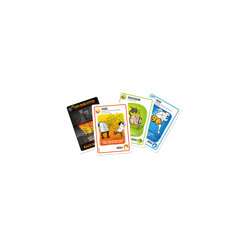 Exploding Kittens es un juego de cartas rápido y divertido en el que tienes que asegurar tu supervivencia ante los temibles ¡gatos explosivos! Se trata de una versión gatuna de la ruleta rusa con un gran componente estratégico. Los jugadores van robando cartas hasta que a alguien le sale un Exploding Kitten. Cuando esto sucede, esa persona muere y queda eliminada de la partida.