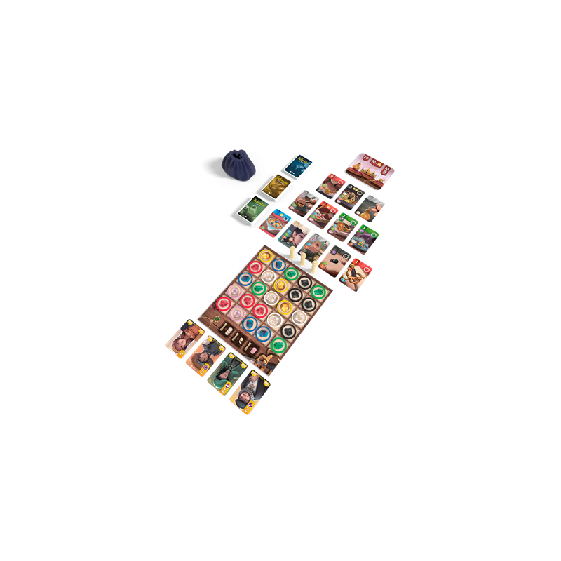 1 tarjeta de victoria, 67 cartas de Joya, 1 bolsa, 3 pergaminos de Privilegio, 1 tablero, 25 fichas, 4 cartas de la Realeza, 1 reglamento.