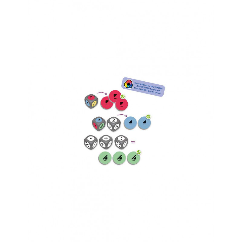 300 fichas de 6 colores diferentes para trabajar la clasificación, con la ayuda de 4 maxi-dados que incluyen colores, puntos y números para aprender a contar, y los signos de sumar y restar para realizar operaciones básicas con las fichas. ¿Qué aprendo? Aprendizaje de formas y colores Atención y concentración Numeración y cálculo Incluye: - 4 maxi-dados (3,5 cm arista) - 300 fichas redondas de plástico de colores Advertencia. No recomendado para menores de 36 meses. Piezas pequeñas. Recomendado de 3 a 7 años.