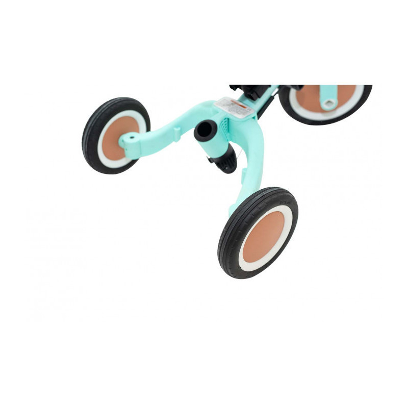 • Provisto de un sencillo sistema que permite transformar la bicicleta sin herramientas y ajustarla a la edad del niño.
