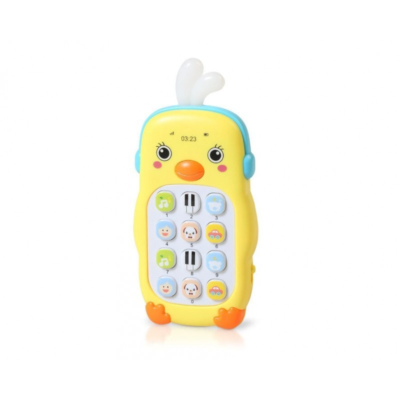 Con forma de simpático pajarito amarillo, al tocar las teclas, descubrirá sus melodías y sonidos reales de móvil con cada pulsación.