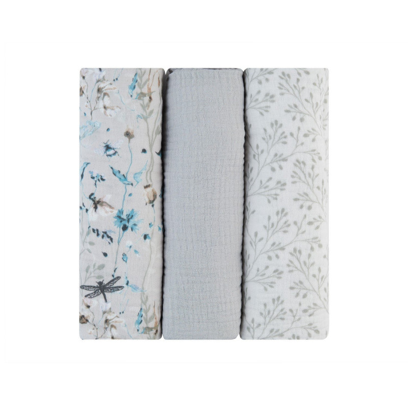 • Juego de 3 pañales de muselina suaves y delicados;