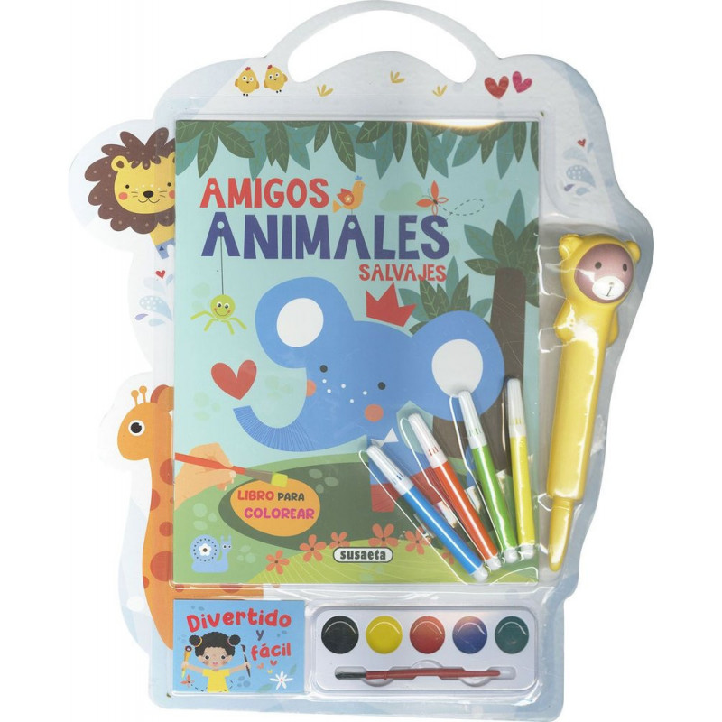 Un completo set de colorear que incluye rotuladores, acuarelas, un pincel y un fantástico boli con forma de osito. ¡Fácil y divertido!