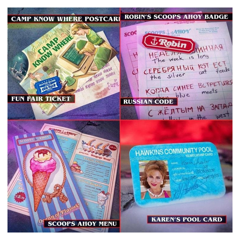 Esta caja contiene más de 50 elementos y recuerdos únicos recopilados por los héroes de Hawkins entre 1983 y 1986, recordándonos a todos que allí sucedieron cosas extrañas.
