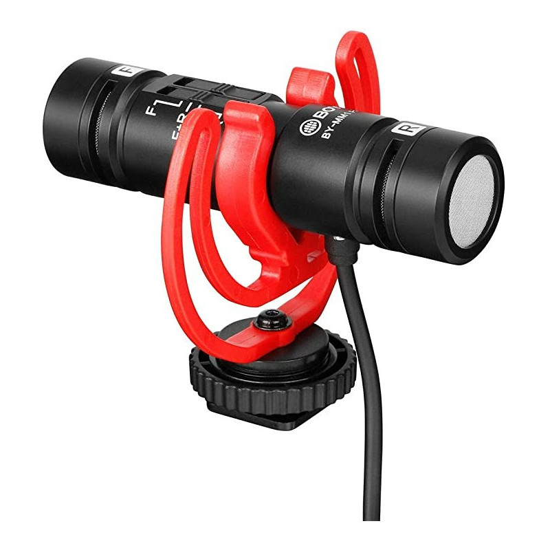 BOYA BY-MM1 PRO es un nuevo micrófono supercardioide de cápsulas duales lanzado, que captura el sonido frontal y trasero de los dispositivos. Construcción de aluminio duradero, operación plug and play, salida de auriculares de 3,5 mm para funciones de monitoreo de audio Compatible para teléfonos inteligentes, tabletas, DSLRS, videocámaras de consumo, PCS y más. Proporciona funciones prácticas para grabación de dos personas, vlogs, periodismo móvil y mucho más. Soporte de choque Rycote Lyre, parabrisas de piel, parabrisas de espuma incluidos.