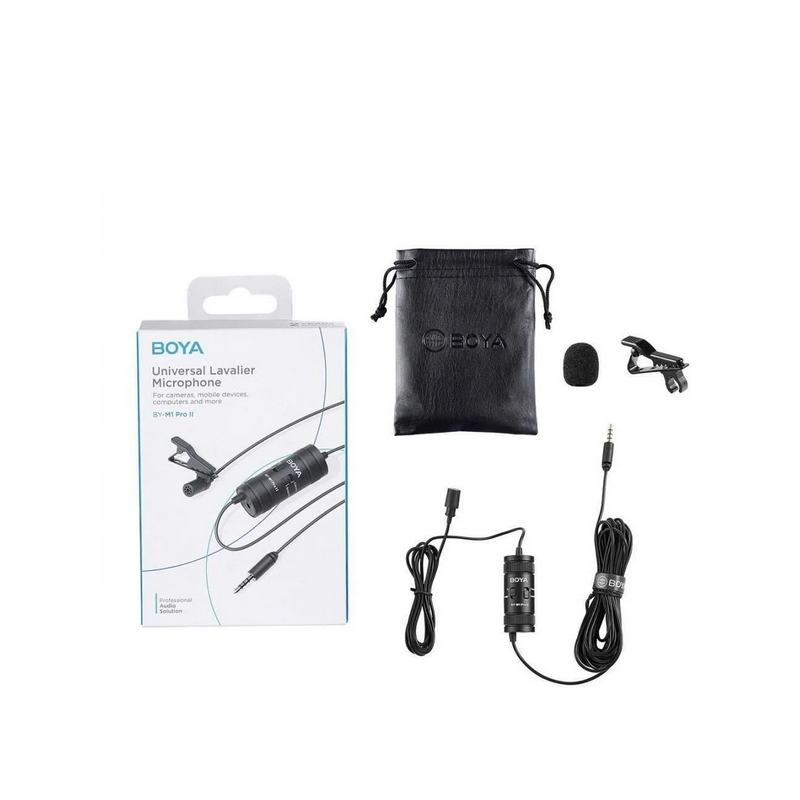 El micrófono de solapa Boya BY-M1 Pro II es la segunda serie de BY-M1 Pro y es compatible con dispositivos como cámaras, videocámaras, ordenadores y teléfonos (con entrada de audio de 3,5mm). Le permite obtener un sonido de mejor calidad en sus secuencias de video. Se puede utilizar especialmente para grabar los sonidos del habla de una sola persona.