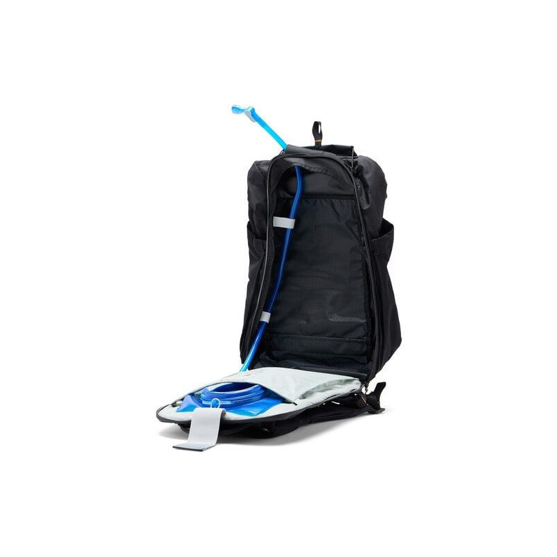 - El bolsillo designado almacena una computadora portátil de 16" o un depósito de hidratación de 3 L.