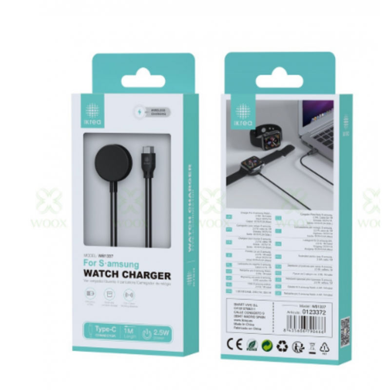 Carga tu smartwatch Samsung con el cargador magnético inalámbrico Ikrea WB1337. Conexión USB-C, potencia de 2.5W y un cable de 1 metro para una carga práctica y segura. Olvídate de los enredos y disfruta de la facilidad de uso.
