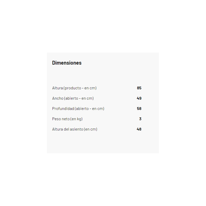 - Altura del asiento: 48 cm.