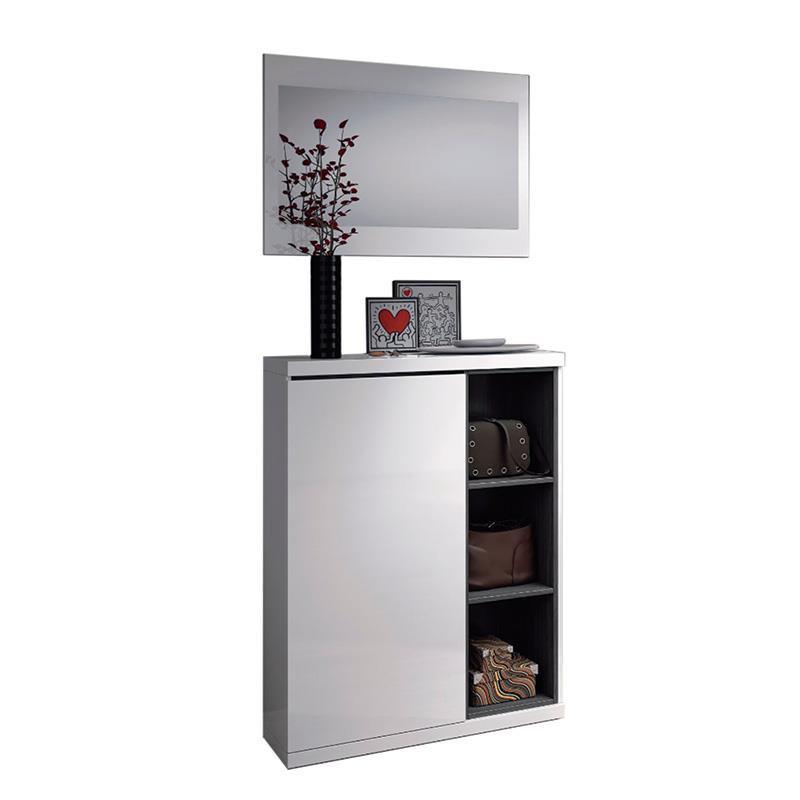 Recibidor Zapatero 1P +espejo 108X79X25CM Bl. Brillo/gris Ceniza MOMI