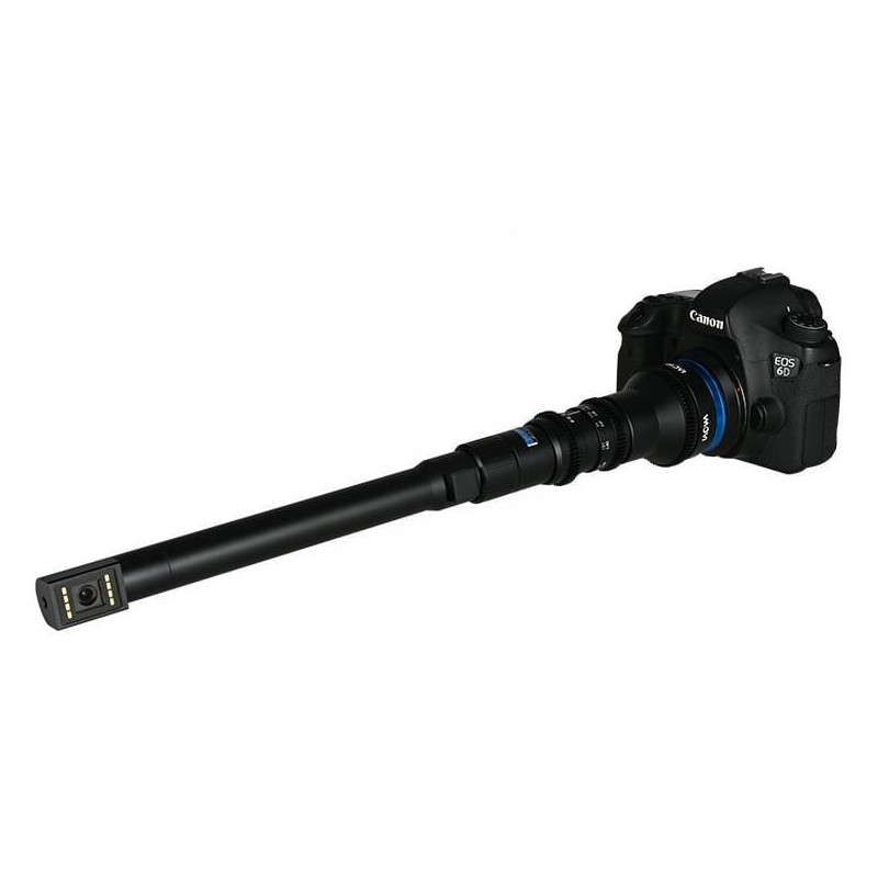 El 24mm T14 2x PeriProbe no solo hereda todas las excelentes características del lente 24mm T14 2x Probe, ahora también se incluye un nuevo tubo con periscopio. La nueva punta de periscopio de 90° desbloquea innumerables movimientos nuevos y emocionantes. El AoV de 85° y una distancia de trabajo muy cercana de 2 cm ayudan a crear la perspectiva del ojo de insecto. El aumento de 2x permite capturar sujetos de diferentes tamaños con detalles. Los usuarios podían meter el cañón largo e impermeable en un espacio estrecho y bajo el agua para obtener una perspectiva única. El LED Ring Lite proporciona una fuente de luz adicional. Los usuarios también pueden cambiar el periscopio de 90 ° de nuevo al alcance recto de 0 °. La lente podría girar 360 ° a lo largo del eje desbloqueando el anillo de orientación. También se pueden montar accesorios adicionales en la punta de la lente a través del orificio de tornillo 1/4.