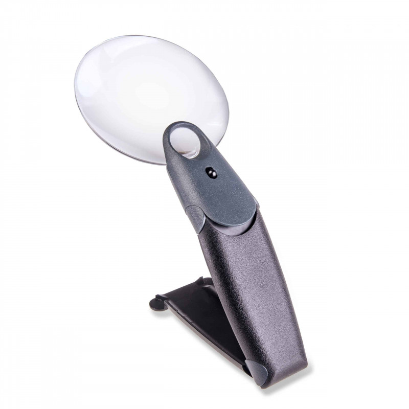 Esta lupa manos libres con luz, FreeHand™ FH-25, ofrece la posibilidad de tomarla con la mano o usarla con las manos libres. La lente 2.5x incluye una lente spot con aumento de 5.5x y está montada en un mango plegable que facilita alternar entre su uso a mano o manos libres, proporcionando un ángulo de visión bastante amplio. Pesa sólo 113gr por lo que es perfecta para usarla en la oficina, en la casa o en terreno. En su posición manos libres, el modelo FH-25, tiene un rango variable de visión siendo de gran ayuda para enhebrar agujas, quitar astillas o atar una nueva mosca de pesca.
