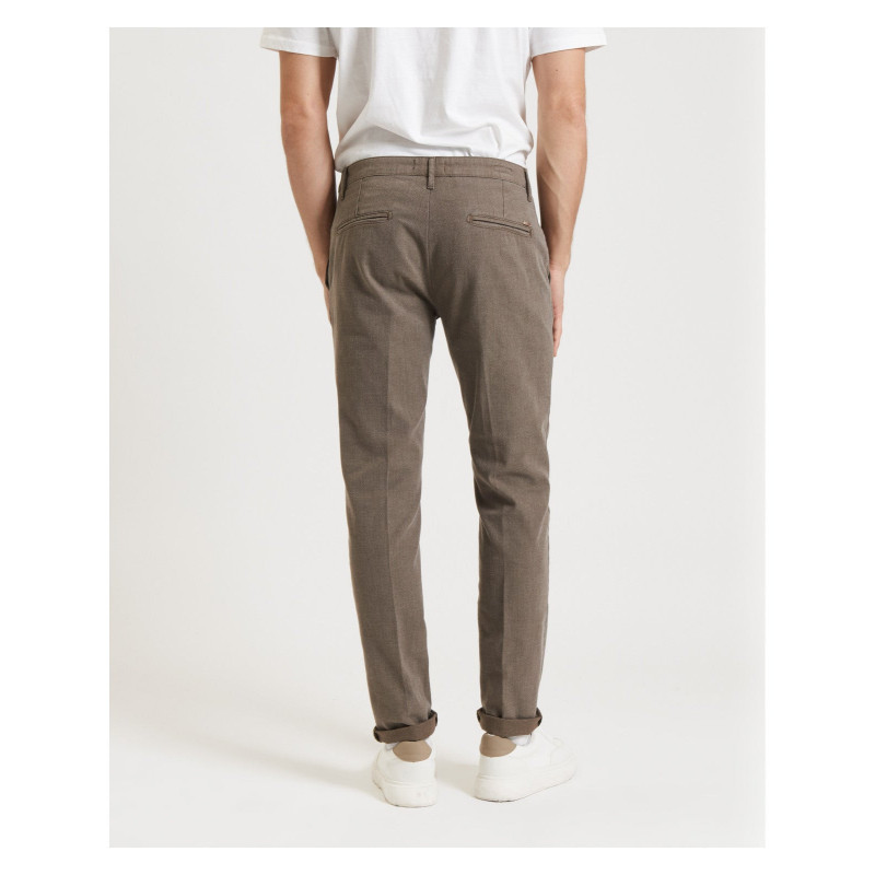 Pantalón de corte regular fit confeccionado en algodón de alta calidad con acabado “puntinato” que añade una textura sutil y distintiva al tejido. El diseño incorpora cintura estándar con cierre de botón y cremallera, bolsillos laterales tipo Americana y bolsillos traseros a ojal, asegurando funcionalidad y estética refinada. Disponible en varios tonos seleccionados, estos pantalones ofrecen versatilidad para elaboraciones tanto casuales como más formales. Material & Cuidado * Tejido principal: 100 % algodón (acabado efecto puntinato). * Para mantener la textura y el color: lavar a máquina en ciclo delicado o a mano con agua fría. * No usar lejía. * No secar en secadora. Mejor secado en plano o al aire. * Planchar a baja temperatura. * Evitar el contacto prolongado con superficies ásperas para preservar el efecto “puntinato”. Una pieza esencial del estilo contemporáneo de Gianni Lupo, ideal para quienes buscan un pantalón estructurado con un detalle textural discreto, fácilmente combinable con camisas, jerséis o blazer para un look urbano refinado.