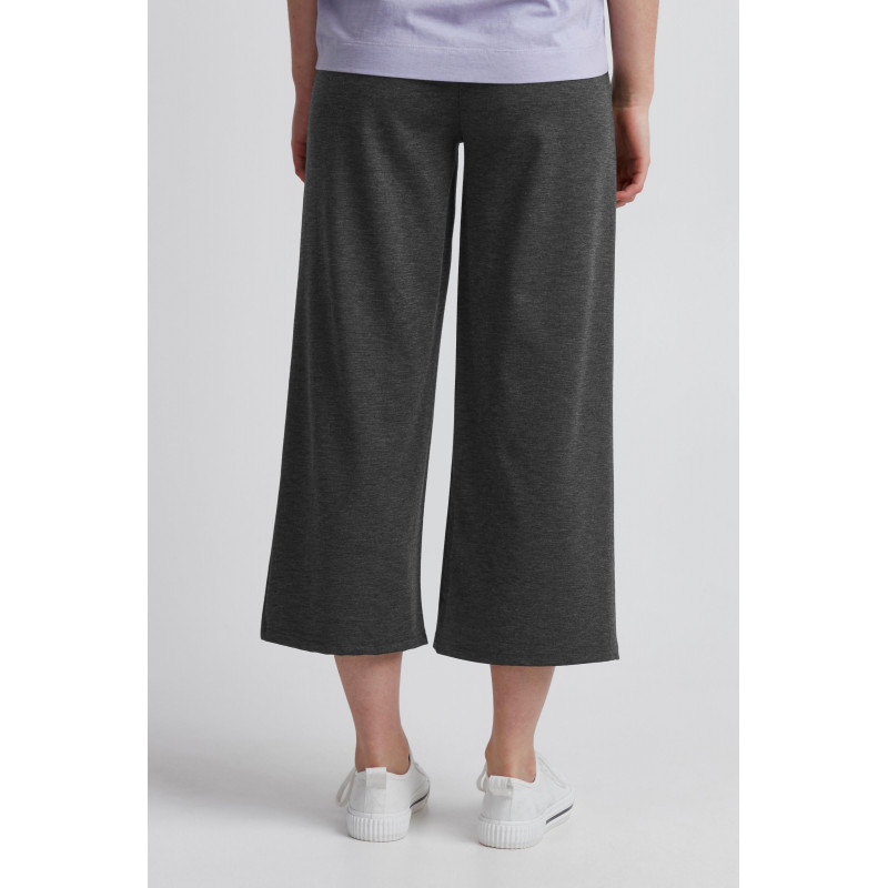 Pantalón tipo jogger de la línea Kate de ICHI en formato culote o ancho de pierna y capri. Estilo: 20116301 Composición: 74% Poliéster Reciclado, 22% Viscosa, 4% Elastano Corte: corte recto, cintura normal, largo recortado, pierna recta