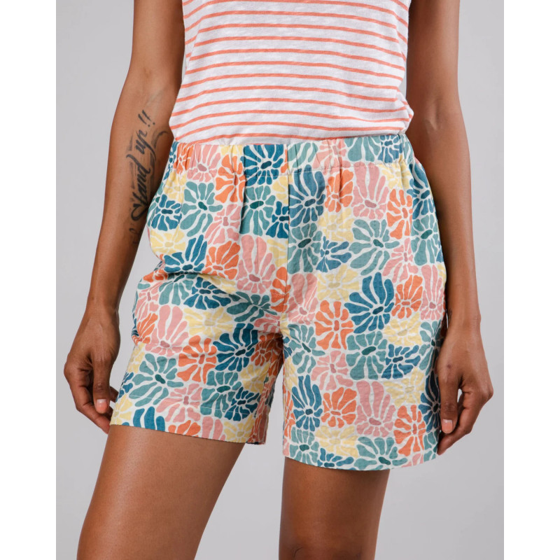 Detalles Kristel mide 1.77m y lleva una talla 36 78% algodón orgánico 22% viscosa sostenible Confeccionado en talleres de España Fabricado con materiales sostenibles Descripción Pantalón corto estampado de tiro alto y pierna recta con cintura elástica para mayor comodidad. Incorporan bolsillos delanteros y un bolsillo trasero. Confeccionada éticamente con algodón orgánico y viscosa sostenible. Instrucciones de lavado lavar a 30°c o menos no secar en secadora planchar a baja temperatura (máx. 110 °c)