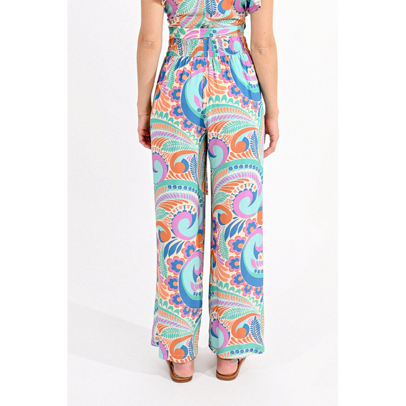 Pantalón largo, de tiro alto y perneras rectas. Modelo con estampado multicolor, bolsillos al bies y detalle de pliegues. Coincidencia de tallas  T.36 - XS T.38 - S T.40 - M T.42 - L T.44 - XL T.36/38 - XS/S T.38/40 - S/M T.40/42 - M/L   Composición y trazabilidad  100%Viscosa * Pays de confection : Chine * Pays d'origine tissage, tricotage, teinture ou impression : Chine * Contient des fibres micro plastiques : Oui, Rejette des microfibres plastiques dans l'environnement lors du lavage * Emballage : Sous sachet transparent et majoritairement recyclable
