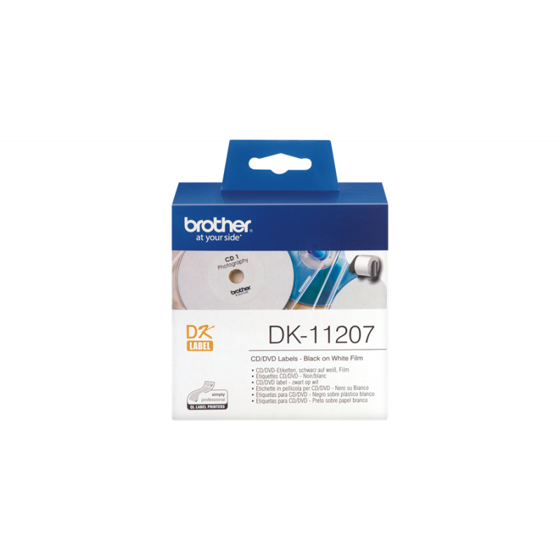 BROTHER Etiquetas DK11207 Etiquetas Circulares Precortadas para Cd/dvd (película Plástica). 100 Etiquetas Blancas de 58 Mm de