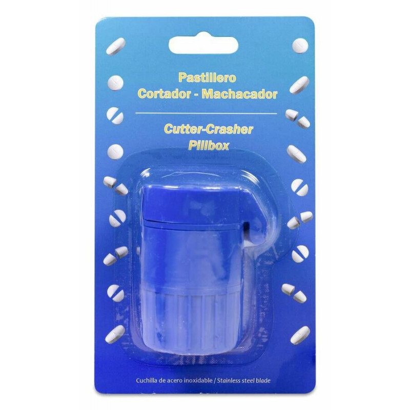 Pastillero que incluye accesorios para cortar o triturar las pastillas.